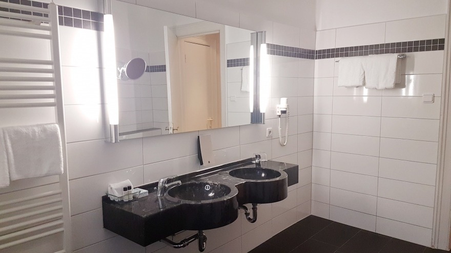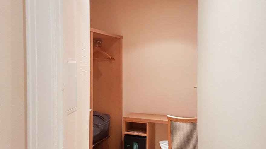 Es war wirklich sehr positiv überraschend! Das Zimmer war sauber und beheizt. Ich persönlich finde es toll das der Teppichboden erhalten wird und dieser auch sehr sauber war. Es gab ausreichende Verdunkelungsmöglichkeiten und eine Minibar. Der Ausblick war zum Hinterhof. Was wir sehr gut fanden, da sich nach vorne hin eine Hauptverkehrsstraße befindet. Wir waren verblüfft wie leise es in dem Zimmer war.