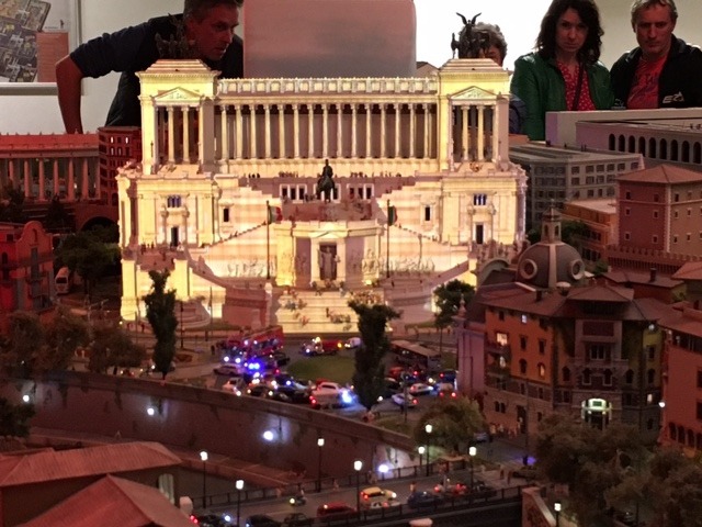 Mit einer kaum vorstellbaren Liebe zum Detail wurde Italien gebaut. Rom: präzise die Figuren auf den Kolonnaden des Petersplatzes, die Fontana di Trevi, ein Unfall vor dem Nationaldenkmal, das Forum Romanum, das Colloseum, die Wäscheleine auf der Dachterrasse... wer Rom kennt, denkt: Ja, so sieht es aus.